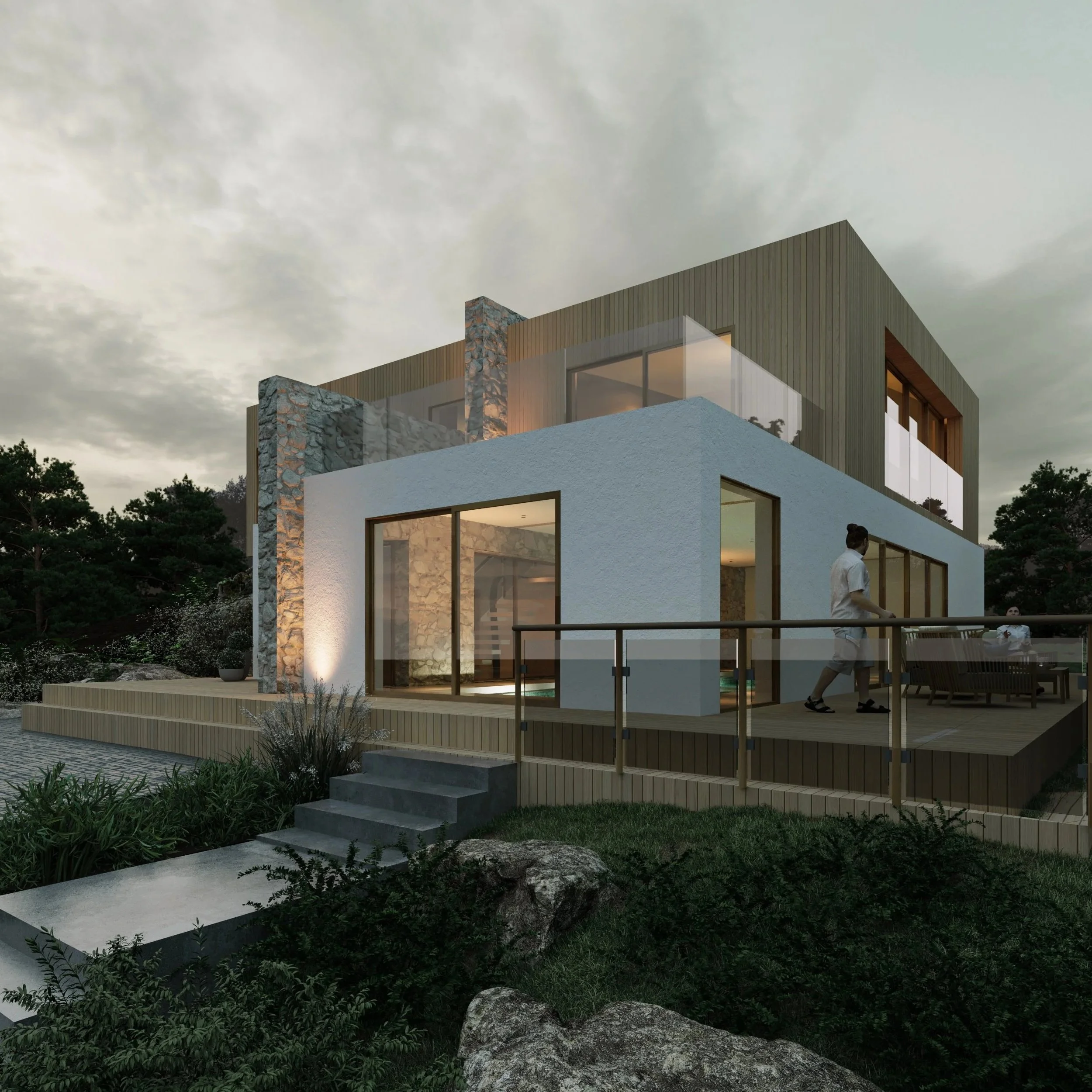 Konceptet översätts sedan i 3D för att fånga samspelet mellan byggnaden och platsen. Vi analyserar exempelvis ljusinsläpp, relation till terrängen, höjdsättning och volymer. Resultatet är en modell som återspeglar både programmet och de förutsättningar som framkommit i förstudien. När formen har satt sig börjar vi utforska olika materialval och uttryck. Vi hittar en balans mellan dina visioner, platsens kvalitéer och en arkitektonisk helhet som känns harmonisk och genomtänkt.